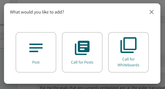 - Creating a Call for Whiteboards to gather responses in a more visual way. The lead can choose a template that members must fill in when submitting their answer.